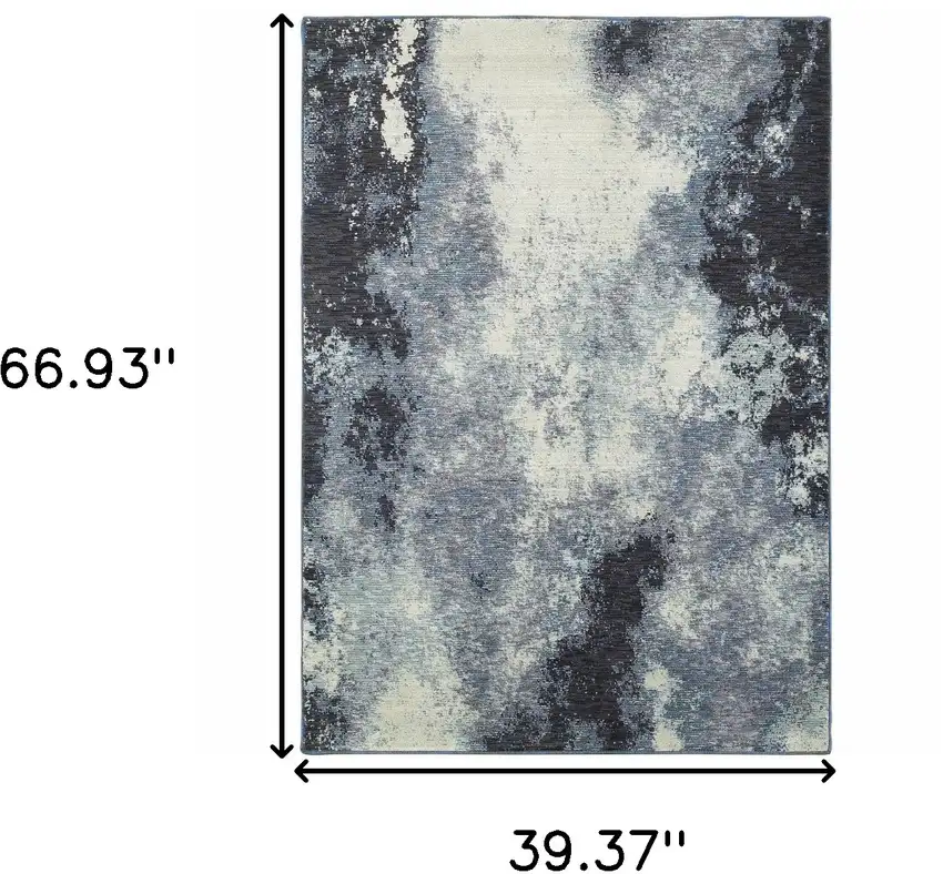 Navy And Ivory Abstract Power Loom Stain Resistant Area Rug