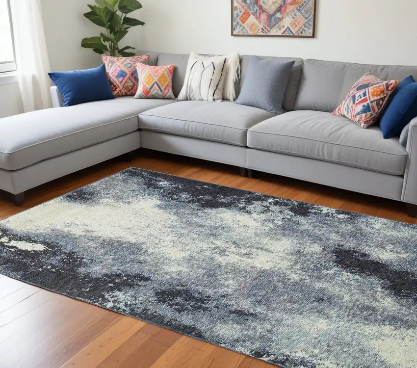 Besides comfort and durability, this rug exudes unmatched style. Its abstract design adds a contemporary flair to your room, becoming the focal point of any space. Let the navy and ivory hues inject a sense of depth and character into your home, elevating your decor to a whole new level.