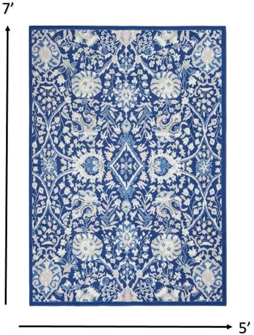 Navy and Ivory Intricate Floral Area Rug