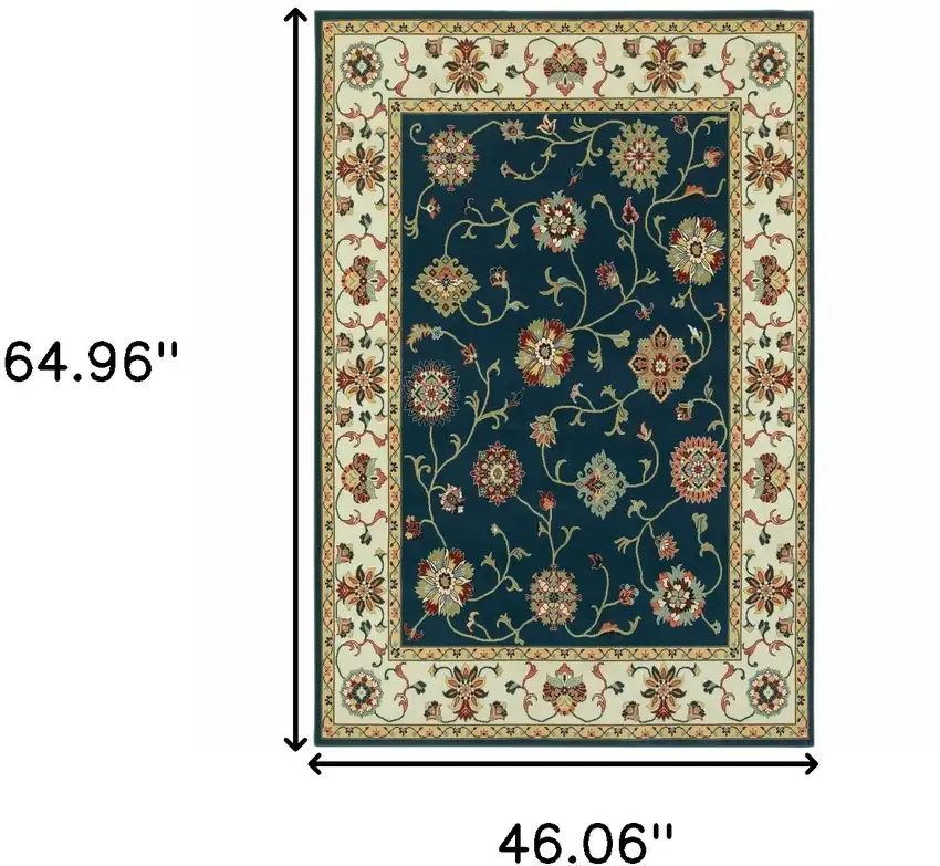 Navy And Ivory Oriental Power Loom Stain Resistant Area Rug