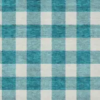Navy and Ivory Plaid Washable Non Skid Indoor Outdoor Area Rug