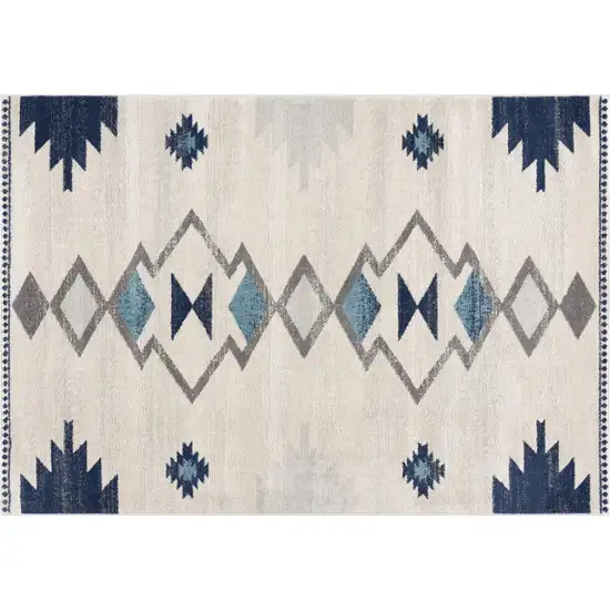 Revamp your living area with this stunning rug, featuring a striking tribal pattern. The blend of deep navy and soothing ivory tones make it a versatile piece for any interior design style.