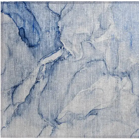 Navy Blue Abstract Washable Non Skid Indoor Outdoor Area Rug