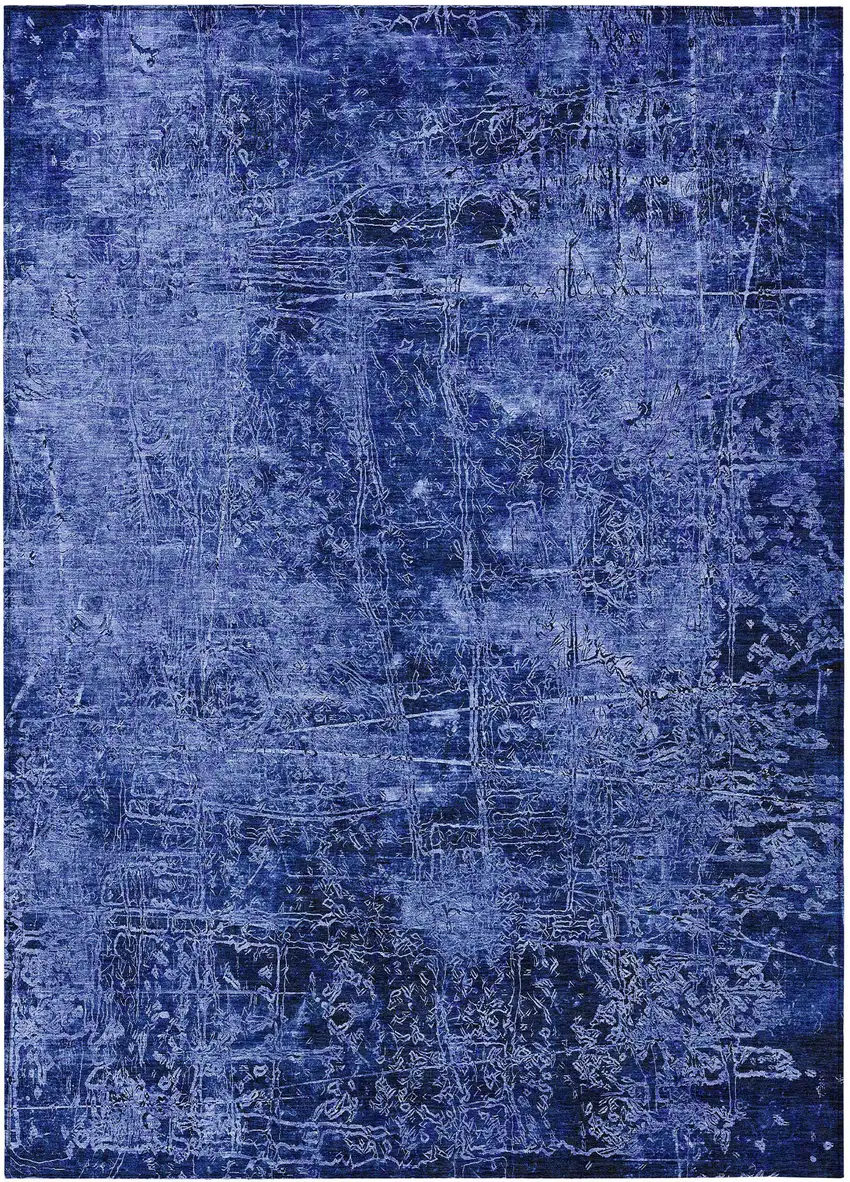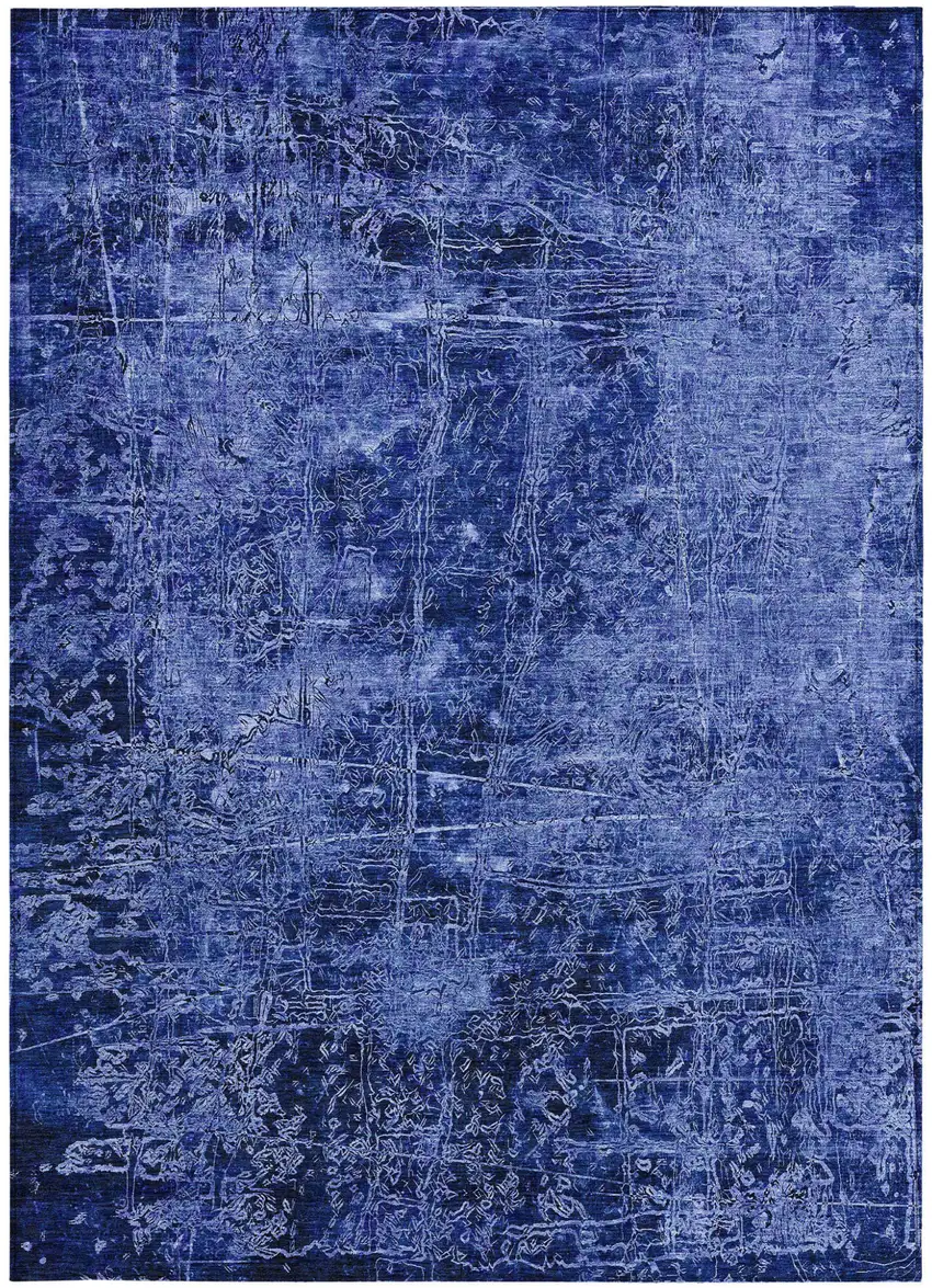 Navy Blue Abstract Washable Non Skid Indoor Outdoor Area Rug