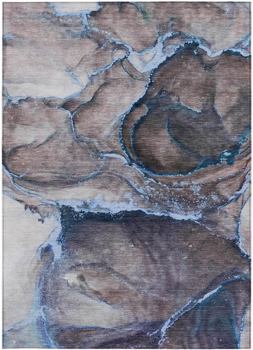 Navy Blue Abstract Washable Non Skid Indoor Outdoor Area Rug