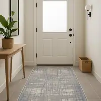 Navy Blue And Beige Abstract Washable Area Rug With UV Protection