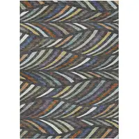 Navy Blue And Beige Abstract Washable Indoor Outdoor Area Rug