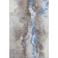 Navy Blue And Beige Floral Washable Area Rug With UV Protection