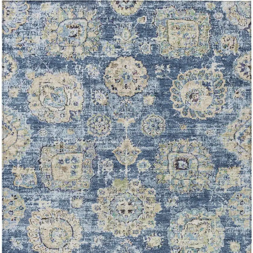 Navy Blue And Beige Floral Washable Indoor Outdoor Area Rug