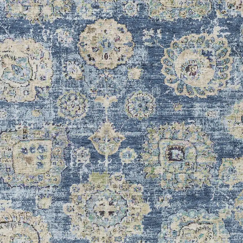 Navy Blue And Beige Floral Washable Indoor Outdoor Area Rug