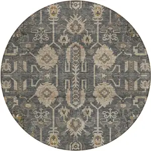 Navy Blue And Beige Floral Washable Indoor Outdoor Area Rug