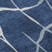Navy Blue And Beige Striped Washable Area Rug With UV Protection