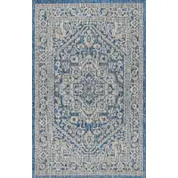 Navy Blue And Cream Abstract Indoor Outdoor Area Rug