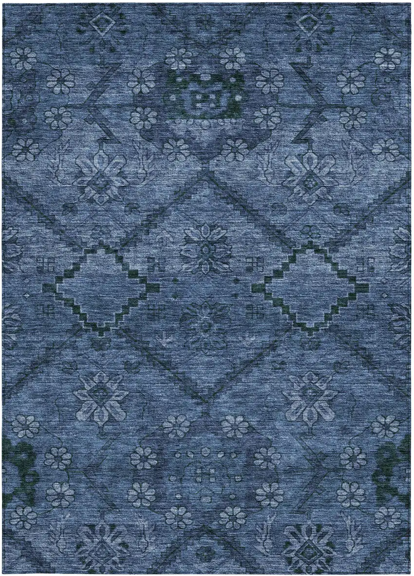 Set an inviting tone in your space with this 3-foot x 5-foot navy blue and denim blue floral washable indoor outdoor area rug. This rectangle shaped rug features a floral design that will work well both indoors or out. A classic shape marries with good looking design for your living room, hall, bedroom, porch, patio, or poolside. Ideal for outdoor spaces or high traffic areas with kids and pets, this rug is made from heavy duty polyester that is stain resistant to help repel water, dirt, and stains. Makes a great way to dress up your patio, porch, or poolside, but also works well as a durable and easy to maintain option in the kitchen, family room, or mudroom. 36-inch h x 60-inch w x 0.19-inch d.