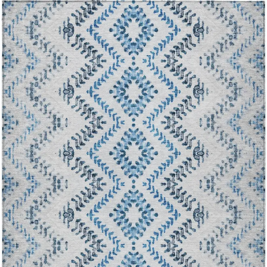 Navy Blue And Denim Blue Geometric Washable Indoor Outdoor Area Rug