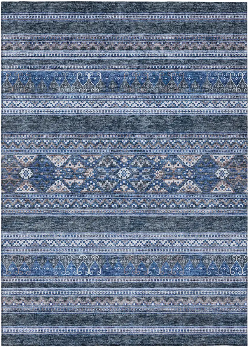 Navy Blue And Denim Blue Southwestern Washable Indoor Outdoor Area Rug