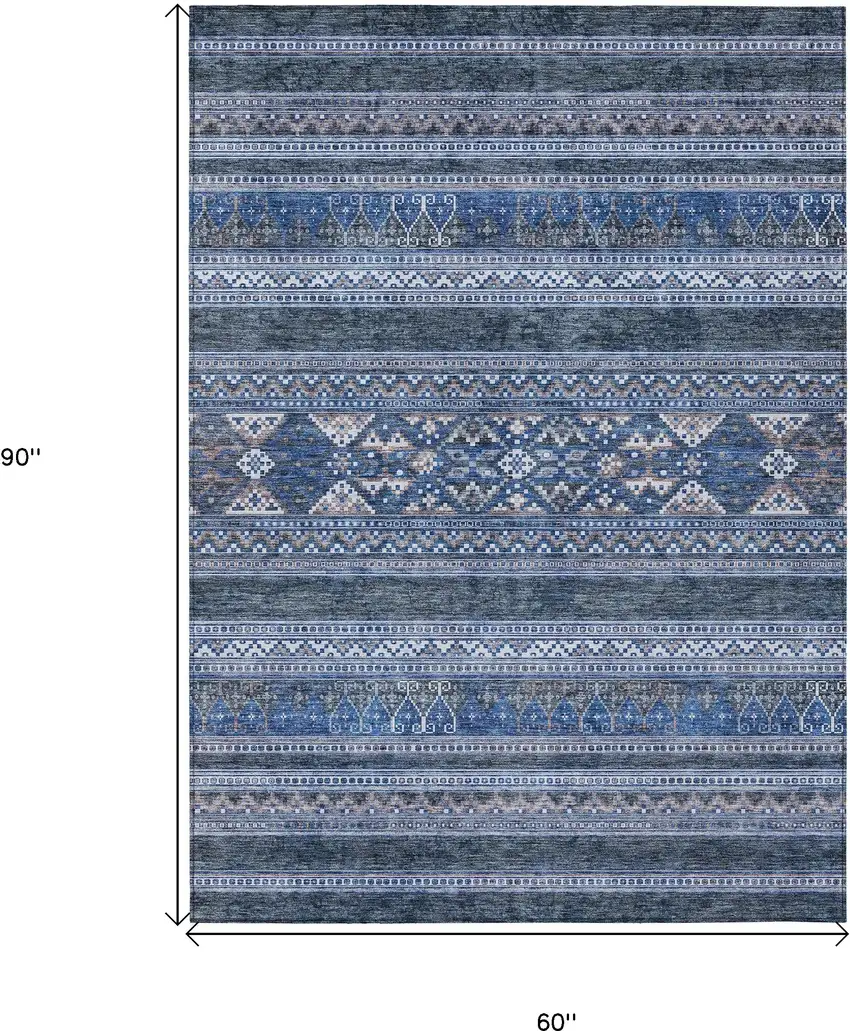 Navy Blue And Denim Blue Southwestern Washable Indoor Outdoor Area Rug