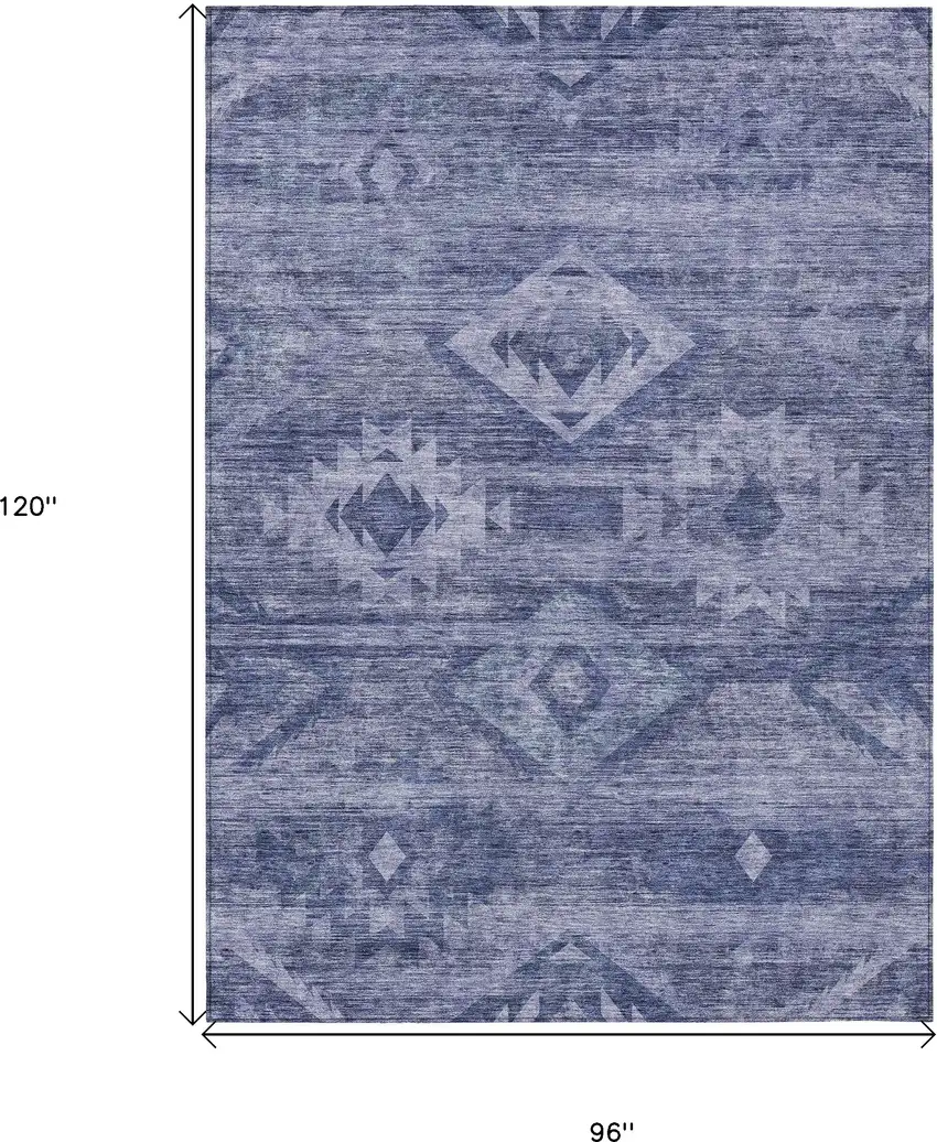 Navy Blue And Denim Blue Southwestern Washable Indoor Outdoor Area Rug