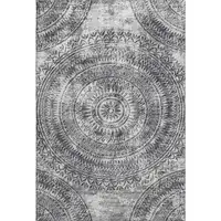 Navy Blue And Gray Abstract Washable Area Rug With UV Protection