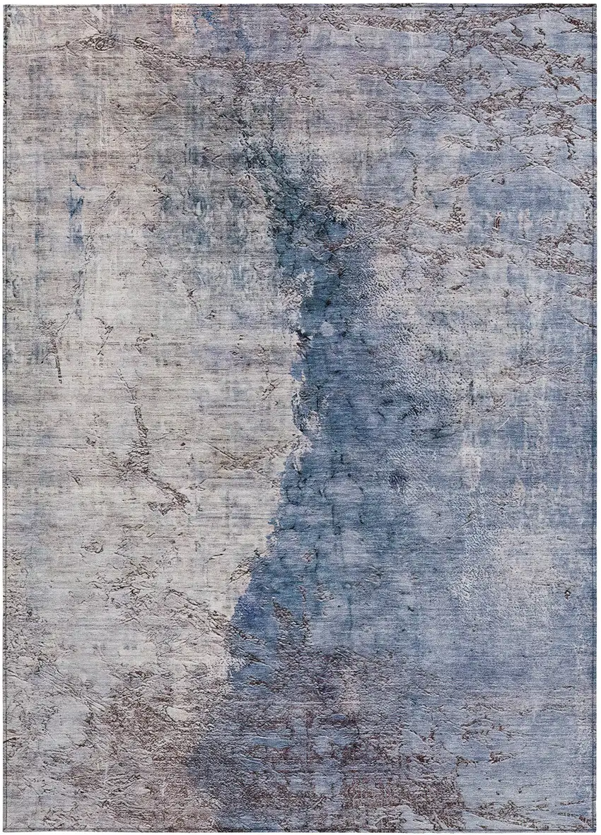 Navy Blue And Gray Abstract Washable Indoor Outdoor Area Rug