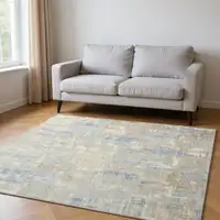 Navy Blue And Gray Damask Washable Area Rug With UV Protection