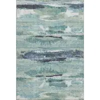 Navy Blue And Ivory Abstract Washable Area Rug With UV Protection