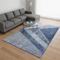 Navy Blue And Ivory Abstract Washable Area Rug With UV Protection