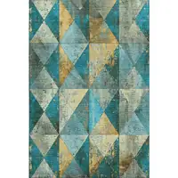 Navy Blue And Ivory Abstract Washable Area Rug With UV Protection