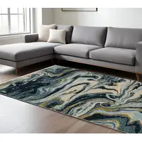 Navy Blue And Ivory Abstract Washable Area Rug With UV Protection