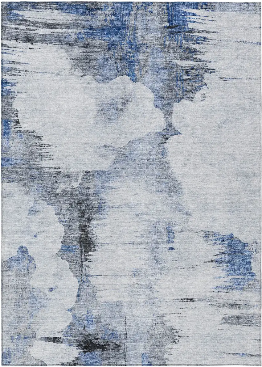 Navy Blue And Ivory Abstract Washable Indoor Outdoor Area Rug