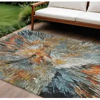 Navy Blue And Ivory Abstract Washable Indoor Outdoor Area Rug