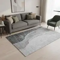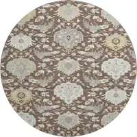 Navy Blue And Ivory Damask Washable Area Rug With UV Protection