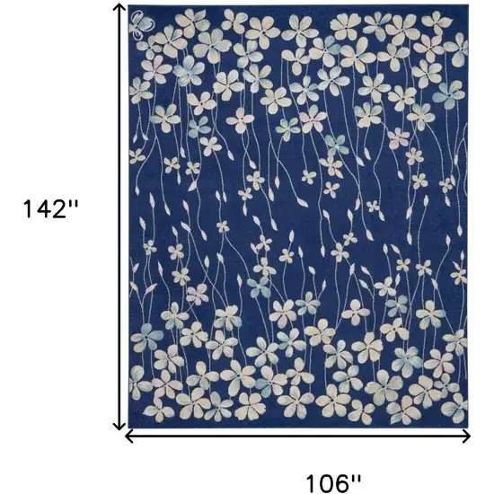 Navy Blue and Ivory Floral Area Rug