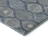 Navy Blue And Ivory Floral Washable Area Rug With UV Protection