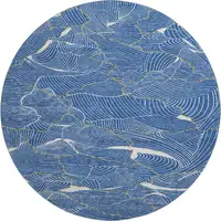 Navy Blue And Ivory Geometric Washable Area Rug With UV Protection