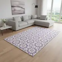 Navy Blue And Ivory Geometric Washable Area Rug With UV Protection