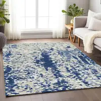 Navy Blue And Ivory Geometric Washable Area Rug With UV Protection