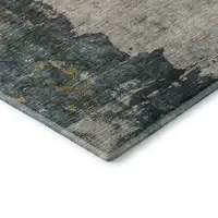 Navy Blue And Ivory Geometric Washable Area Rug With UV Protection