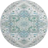 Navy Blue And Ivory Geometric Washable Area Rug With UV Protection