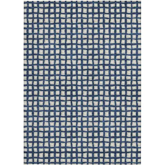 Navy Blue And Ivory Geometric Washable Indoor Outdoor Area Rug