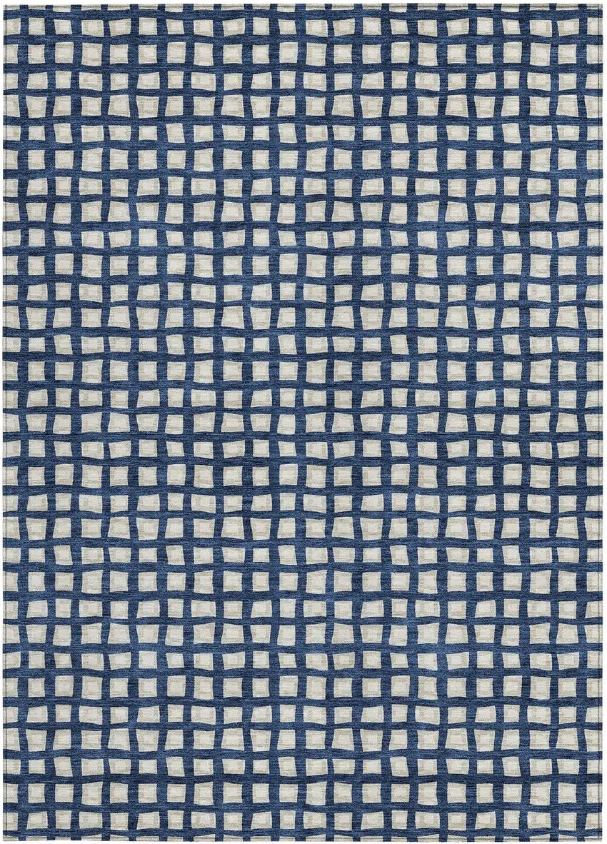Navy Blue And Ivory Geometric Washable Indoor Outdoor Area Rug