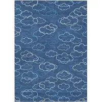 Navy Blue And Ivory Geometric Washable Indoor Outdoor Area Rug