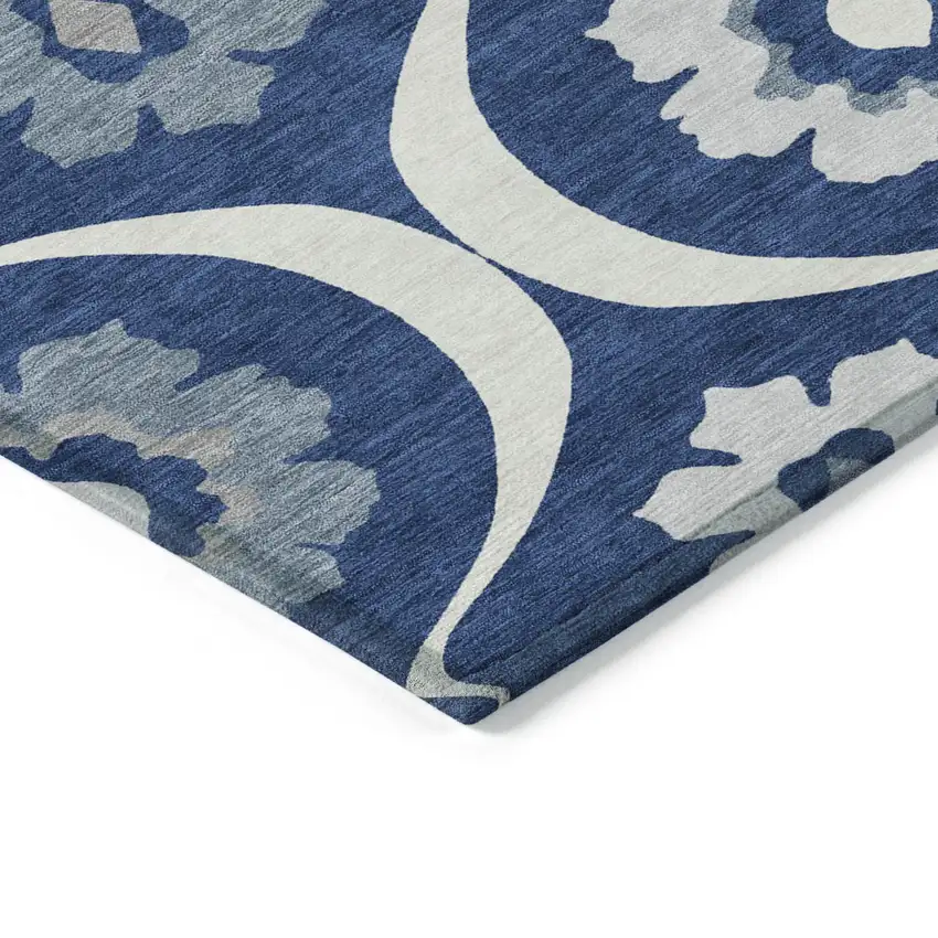 This 8-foot x 10-foot navy blue and ivory medallion washable indoor outdoor area rug, is a great way to add warmth to a room. This rectangle shaped rug features a medallion design that will work well both indoors or out. A classic shape marries with good looking design for your living room, hall, bedroom, porch, patio, or poolside. Ideal for outdoor spaces or high traffic areas with kids and pets, this rug is made from heavy duty polyester that is stain resistant to help repel water, dirt, and stains. Versatile in use, durable, and easy to maintain, this rug is an ideal solution to add a decorative and inviting touch to your indoor or outdoor space. 96-inch h x 120-inch w x 0.19-inch d.