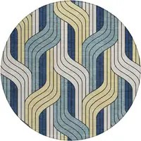 Navy Blue And Ivory Oriental Washable Indoor Outdoor Area Rug