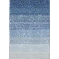 Navy Blue And Ivory Striped Washable Area Rug With UV Protection