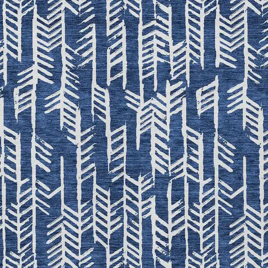 Navy Blue And Ivory Tribal Washable Indoor Outdoor Area Rug