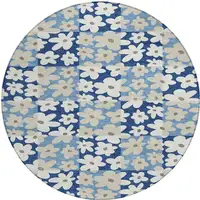 Navy Blue And Ivory Tribal Washable Indoor Outdoor Area Rug