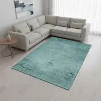 Navy Blue And Silver Floral Washable Area Rug With UV Protection