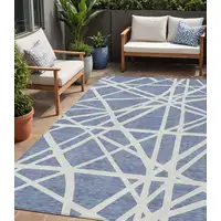 Set an inviting tone in your space with this 9-foot x 12-foot navy blue and silver floral washable indoor outdoor area rug. This rectangle shaped rug features a floral design that will work well both indoors or out. A classic shape marries with good looking design for your living room, hall, bedroom, porch, patio, or poolside. Ideal for outdoor spaces or high traffic areas with kids and pets, this rug is made from heavy duty polyester that is stain resistant to help repel water, dirt, and stains. Versatile in use, durable, and easy to maintain, this rug is an ideal solution to add a decorative and inviting touch to your indoor or outdoor space. 108-inch h x 144-inch w x 0.19-inch d.