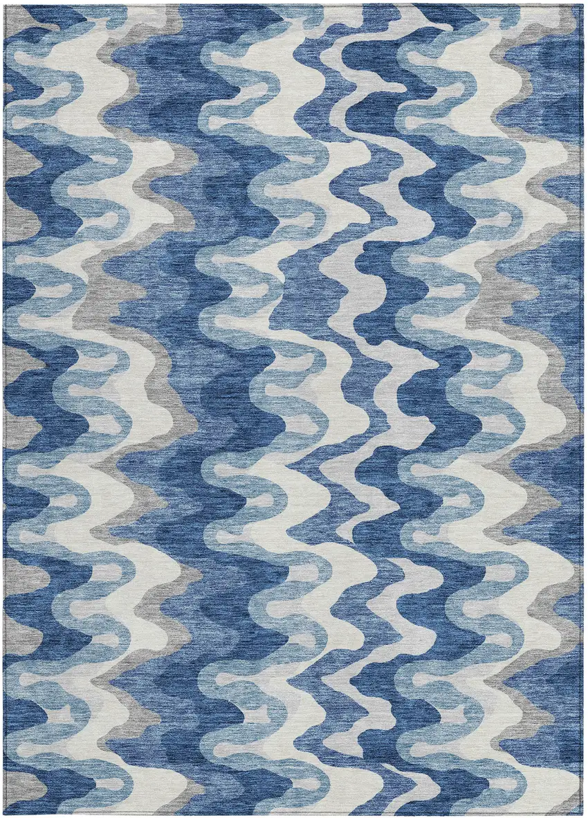 Navy Blue And Sky Blue Abstract Washable Indoor Outdoor Area Rug